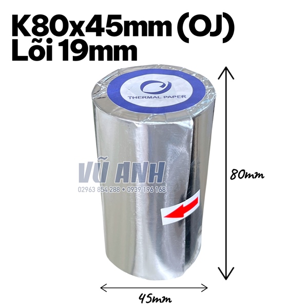 Giấy in nhiệt OJ 80x45 lõi 19mm (T/100c)